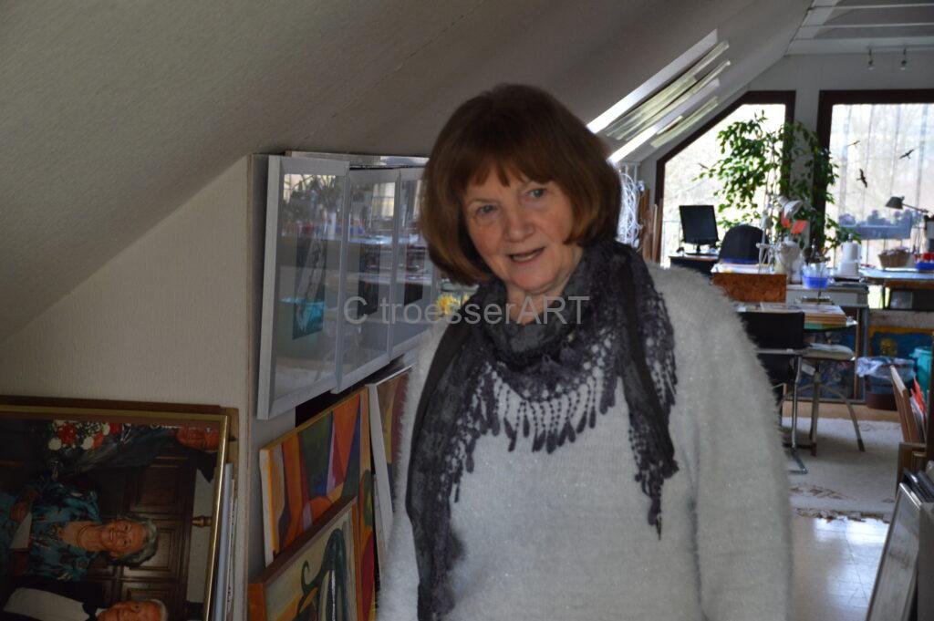 Zum Malen ist Elfi Lütcke eher zufällig durch ihren Mann gekommen, den sie schon mit 17 Jahren kennengelernt, fünf Jahre später geheiratet hat und mit dem sie bis heute in Tiefenbroich wohnt. Als nämlich ihr erstes Kind unterwegs war, konnte sie nicht mit auf die Piste zum Skifahren. Damit sie sich nicht langweilte, schenkte ihr Mann Helmut ihr einen Kasten mit Ölfarben – eine Initialzündung, die zu einer Parallelwelt geführt hat, die bis heute gewachsen ist und anhält: