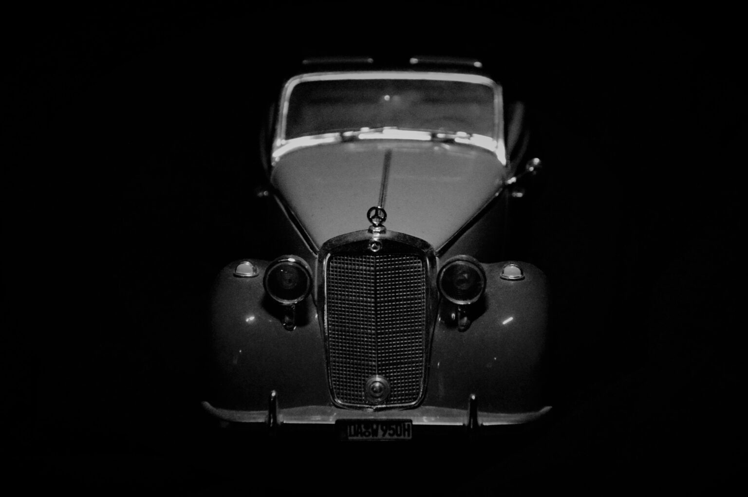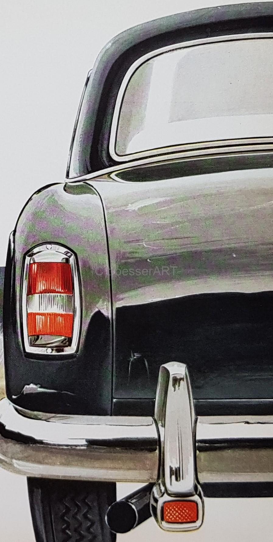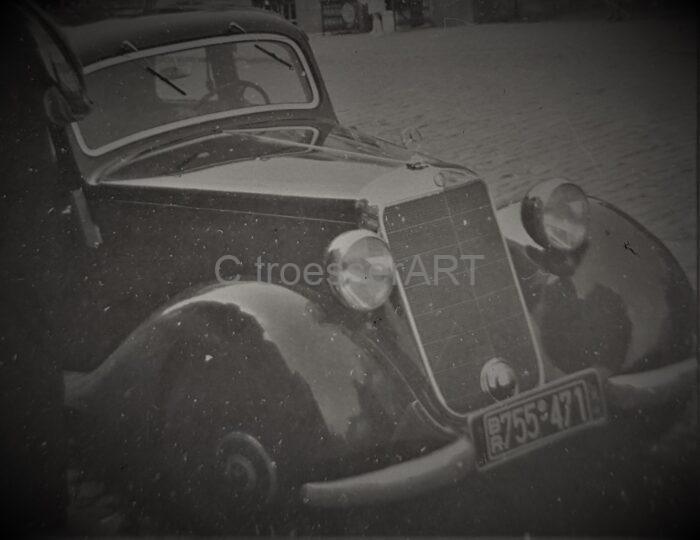 “Ab jetzt beginnt eine neue Zeit“ sagte der Vater andächtig, nahm behutsam den silbernen Stern und alle zusammen marschierten wir vom ersten Stock zur Garage hinter dem Haus. Nachdem die hölzerne Doppeltür geöffnet war spürte man die zugige Winterkälte kaum, sah und roch man doch das Unfassbare: Ein neues schwarzes Auto mit einem Gesicht. Links und rechts zwei große Augen als Scheinwerfer zwischen den weit ausladenden Kotflügeln wie Pausbacken, in der Mitte eine hohe silberne Nase als Kühler und darüber die Windschutzscheibe als Stirn mit Scheibenwischer wie zwei Wimpern. So etwas hatten wir noch nie gesehen. Vorsichtig drehte der Vater die kleine Platte mit dem silberglänzenden Stern auf den Kühler und sagte: “Das ist unser neuer schwarzer Hundertsiebziger für die ganze Familie“. Wir dachten, dieses Gefährt wird ein neues Familienmitglied, wie ein Haustier. Schließlich war es ein Geschenk für alle.