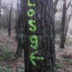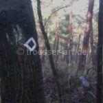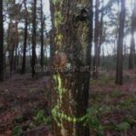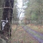 Doch bei dem Projekt Weg-und Wald-Graffiti geht es nicht um die Verschlüsselung oder Entschlüsselung von Zeichen und Markierungen, sondern um das Eingreifen von Form und Farbe in den Wald oder Weg. Auch wenn der Wanderer auf seinem Weg vielleicht vor lauter Bäumen die Zeichen nicht mehr sieht, ist das verständlich. Sind diese doch eher klein und für die meisten Menschen ohne Bedeutung. Auch wenn sie der Natur ihren farbigen Stempel aufdrücken, sind sie weder bedrohlich noch beachtenswert.