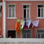 Unabhängig von jeder Frage von Erlauben und Verbieten geht es in dem kleinen Fotoprojekt „Vom Winde umweht, von der Sonne verwöhnt“ darum, wie die Wäsche im Freien das Bild verändert. Und was sie aussagt über die Menschen, die dort wohnen. Gibt es eine Reihenfolge der Hängung, werden große und kleine Wäsche getrennt, gibt es tatsächlich „anstößige“ Formen der Wäsche und eine Einschränkung der Ästhetik im Auge des Betrachters?